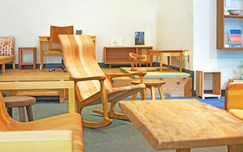 地元・紀州材のみを使用し、無垢の家具を製作。ふくよかで、丸みのあるデザインが特徴です。