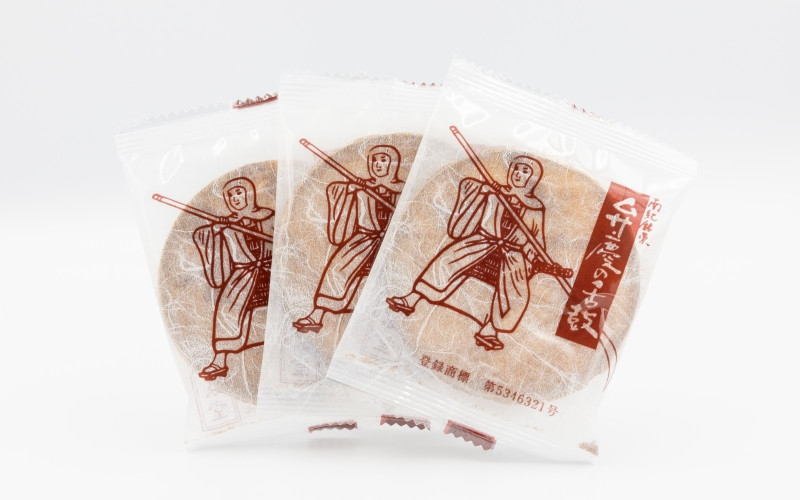 紀州田辺出身といわれる武蔵坊弁慶(むさしぼう べんけい)さんに因んだ焼き印を1枚ずつ押したたまごせんべいです。玉子をたっぷり使用した深い味わいをお楽しみ下さい。お土産用や贈答用にもお買い求めいただいています。