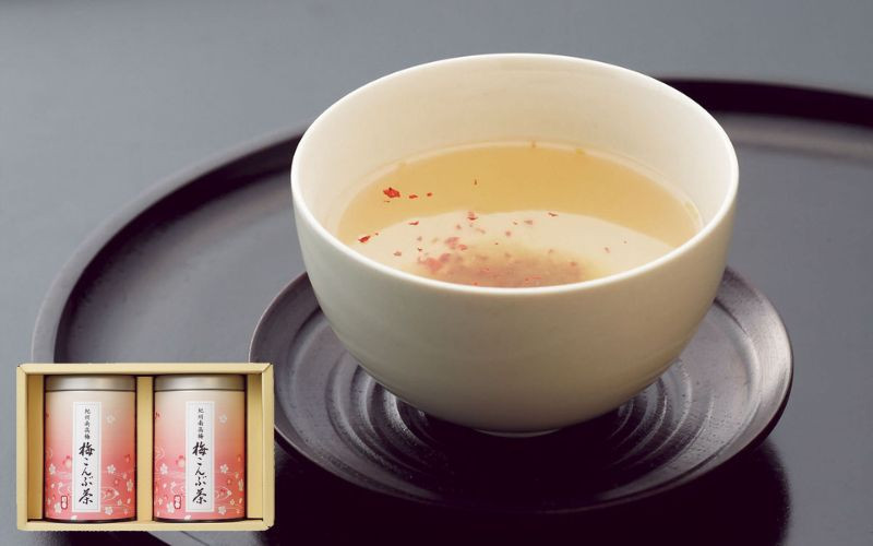梅香本舗オリジナルの梅こんぶ茶は、南高梅と北海道産昆布の旨みをそのまま乾燥させて、いい塩梅に仕上げました。昆布のやわらかな風味と梅に含まれるクエン酸の酸味が合わさって、すっきりと上品な味わいです。