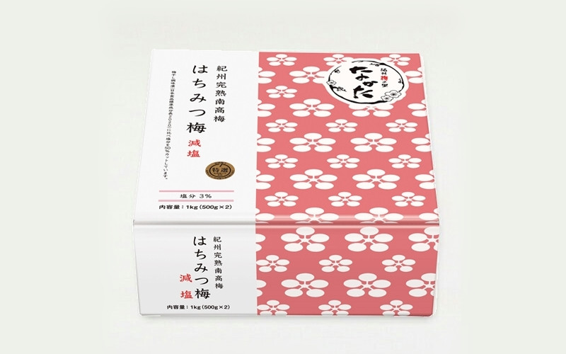 『はちみつ梅 減塩』。完熟梅の風味とともに、上品な甘さが引き立ち、口いっぱいに広がるスイートな味わいをお楽しみいただけます。