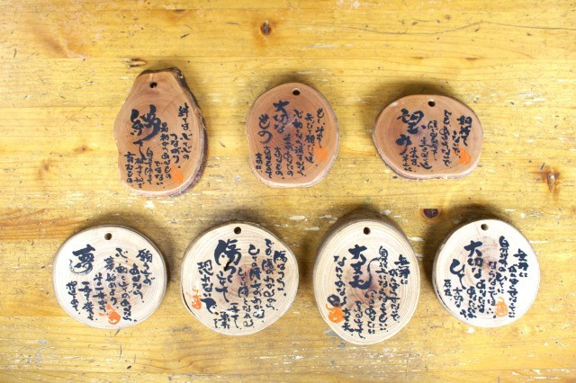 田辺市内の欅(けやき)の木に詩人「せい」さんが1つ1つ心を込めて書いていただいたメッセージプレートです。