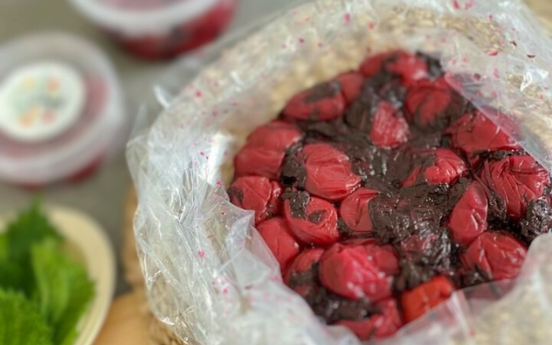 昔ながの味でとにかく酸っぱく、紫蘇で漬けた梅干しです。