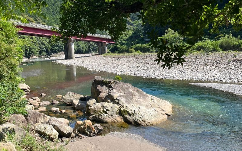 目の前には澄んだ川が流れ、熊野古道もすぐそば。