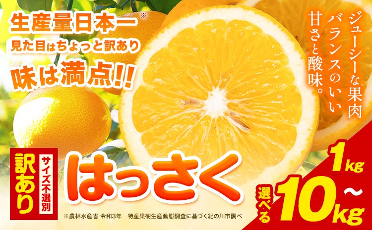 地域の生産者応援の品 チョイスPayポイントと交換できる品 ジューシーな果肉と、甘さと酸味のバランスがとれた味わい。 見た目は訳あり中身は変わらぬ美味しさ ご家庭用 はっさく 約1kg 約5kg 約10kg (サイズ不選別) 早生・晩生指定不可《2027年2月上旬-3月中旬に出荷予定(土日祝除く)》紀の川市 八朔 柑橘 果物 フルーツ ご家庭用 ビタミンC 柑橘 訳あり 規格外 訳あり 傷