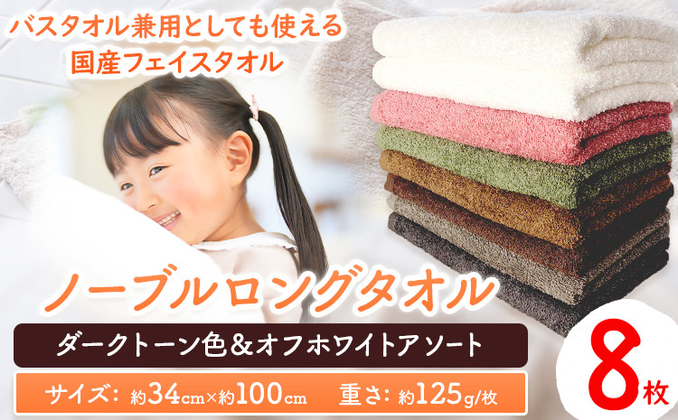 バスタオル兼用としても使える国産フェイスタオルです! フェイスタオル ノーブルロングタオル8枚(ダークトーン色とオフホワイト)アソート 株式会社フタバ《90日以内に出荷予定(土日祝除く)》和歌山県 岩出市 タオル フェイスタオル 国産 8枚 タオル アソートタオル 岩出市 バスタオル フェイスタオル フタバ タオル 国産 バスタオル 選べる ノーブル ロングタオル ノーブルロングタオル 日用品 掃除 入浴 タオル カラー 温泉 サウナ 風呂 洗顔