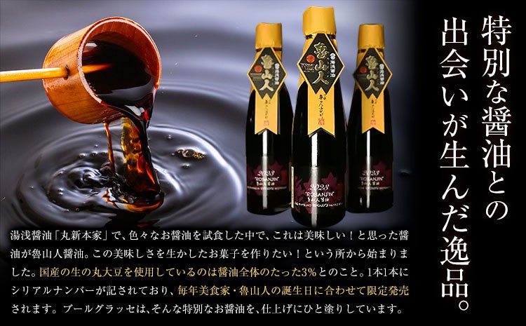 生地を練り上げ、パリンと割れるような食感を追求した厚さ約1.5mmの薄焼ガレット。仕上げに希少性の高い「魯山人醤油」を表面に塗り、再度オーブンで焼くことで香ばしい香り、コクを引き出したお菓子です。