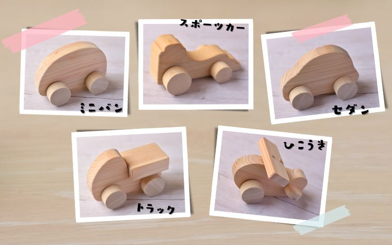 種類は「ミニバン、セダン、トラック、スポーツカー、飛行機」の全5種類で、その中から3種類をおまかせでお届けいたします。