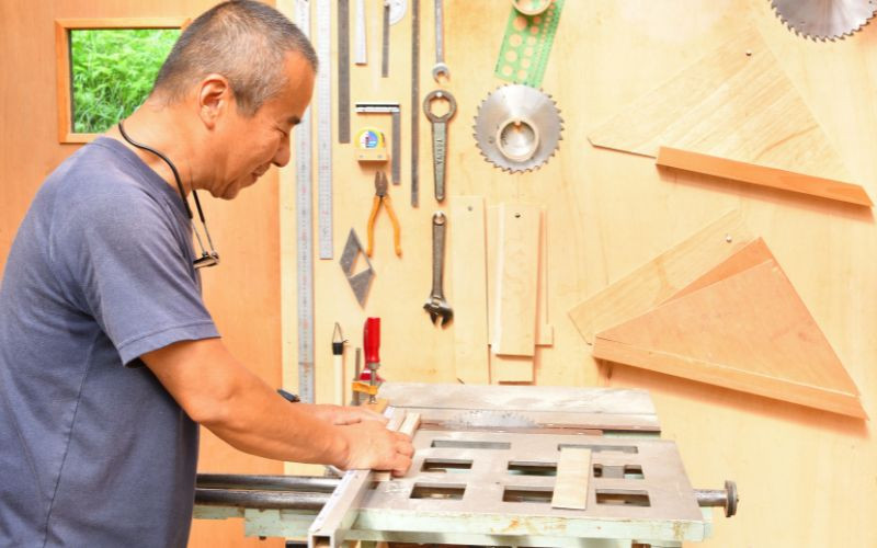 大阪で木工指導員として勤務していましたが紀美野町の自然に惹かれ移住し、山間で「木工なごみ庵和」を開業し家具などの受注生産を行っています。