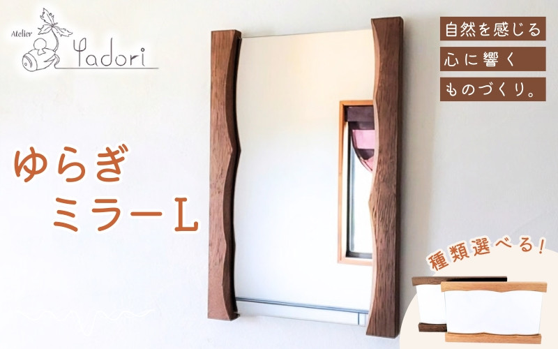 ひとつひとつまごころを込めて。木本来の温もりをお届けいたします。 ゆらぎミラー L 〈工房 アトリエやどり 和歌山県 紀美野町〉/ 木工品 鏡 ミラー おしゃれ 木材 天然 木工 手作り プレゼント ギフト 【atr009】