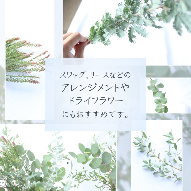 | 容量 | ユーカリ各種ミックス 約5.6種類(おまかせ約40㌢) 15~20本程度(枝ぶりによります) |