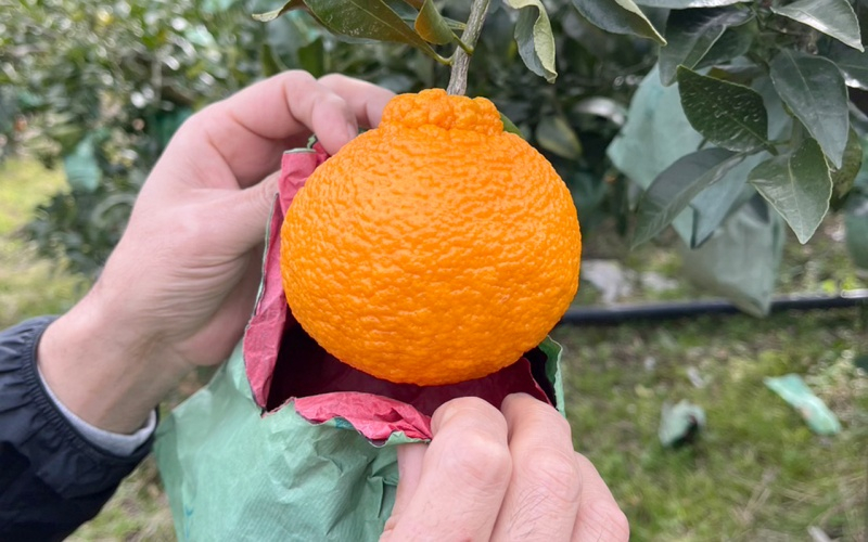 ただ袋を掛ける作業は、非常に手間暇がかかり、園地内の不知火全てに袋を掛けるのは難しいため、生産量の2割程度となります。