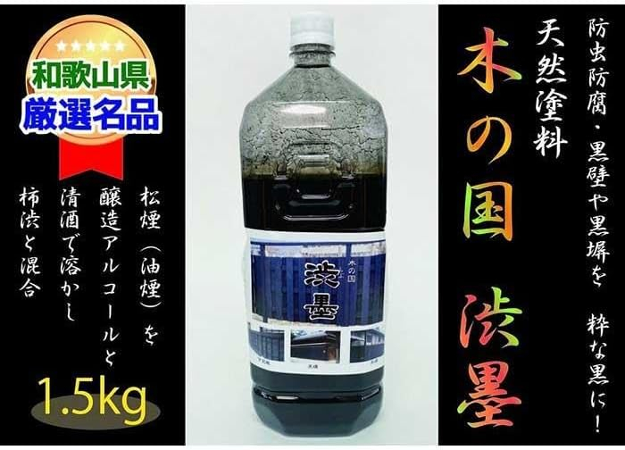 チョイスPayポイントと交換できる品 松煙(油煙)を醸造アルコールと清酒で溶かし柿渋と混合。純和風天然塗料。順次発送 <天然塗料>木の国 渋墨 1.5kg