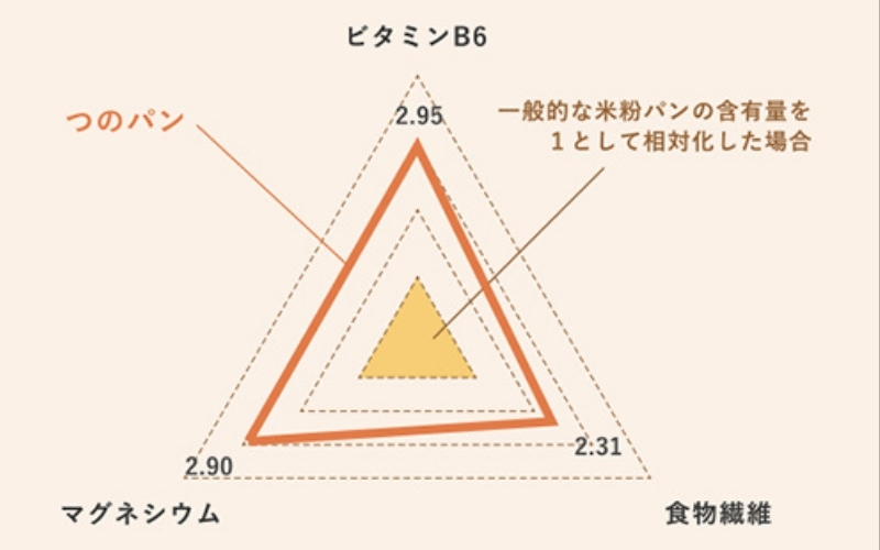 米粉とこめ油でできたコメトコメの米粉パン(つの食パン・もちもちお米ブランパン)には、米ぬか由来の天然の栄養成分が含まれています。米ぬかから抽出されるビタミンB様成分「イノシトール」や、GABA・食物繊維・マグネシウム等を含むお米ブラン「RICEO-EX(ライセオ)」が生地に練りこまれているので、お米由来の栄養が摂取できます。