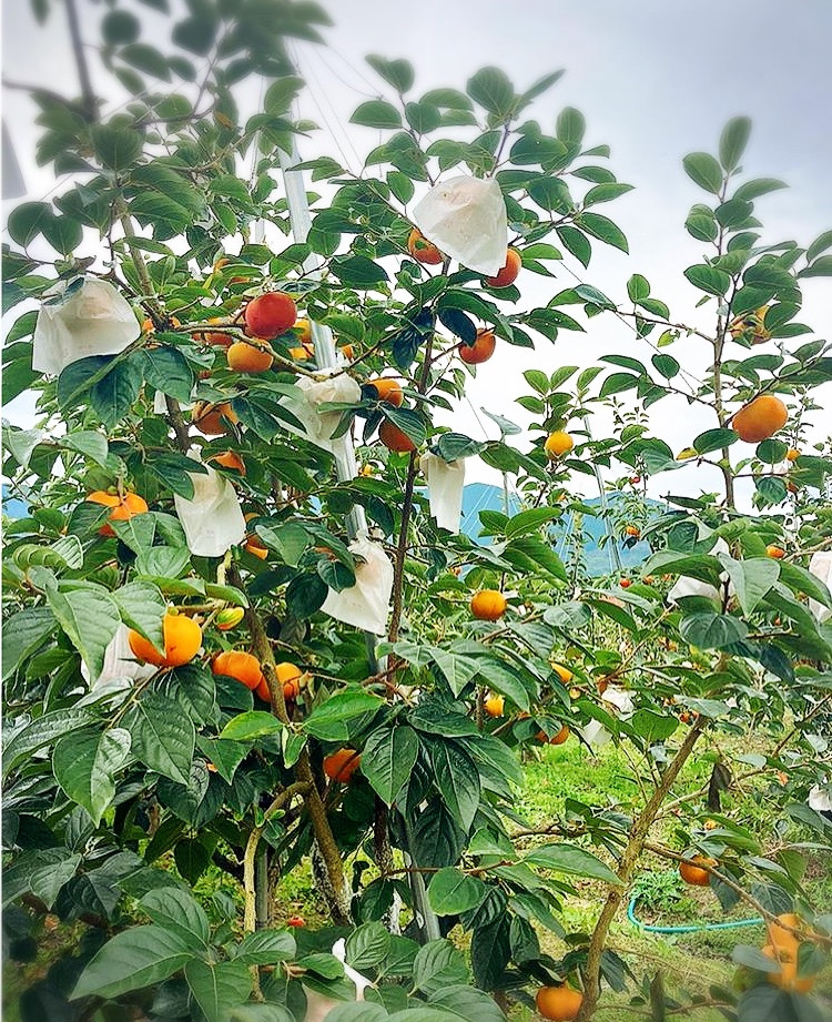 一つ一つ袋掛けし、こだわりの海藻エキスを土壌灌水・葉面散布するなど、独自の栽培方法で納得のいく柿を育て上げました。