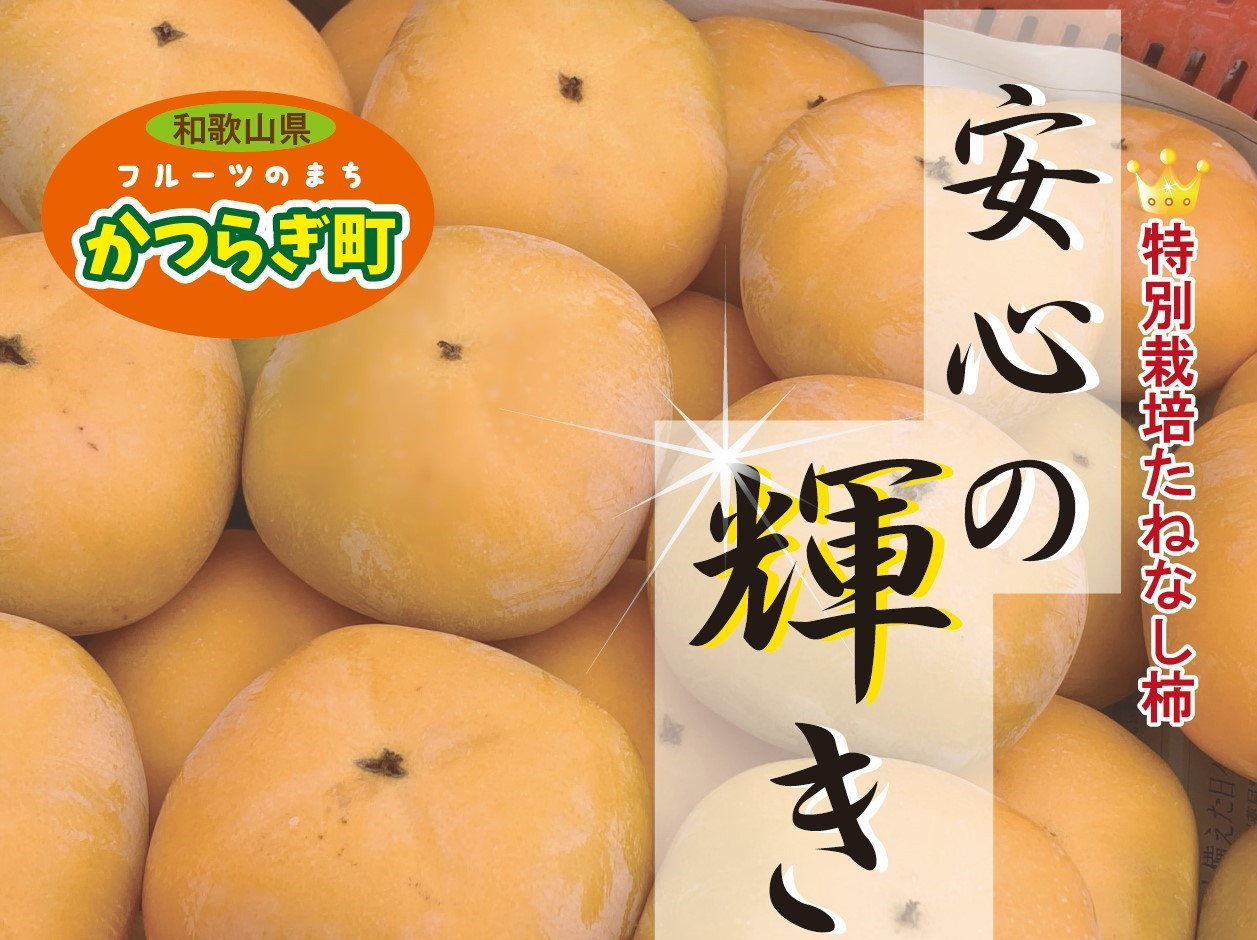 こちらは、「安心を皆様に届けたい」という気持ちを込めて栽培した「特別栽培たねなし柿」です。