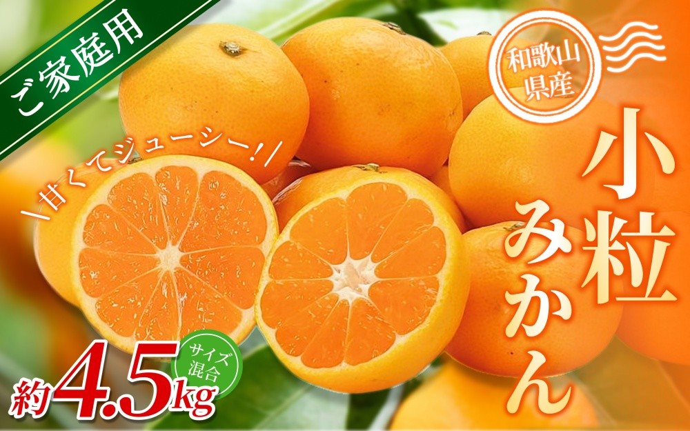 | 容量 | 家庭用小粒みかん 約4.5kg 品種:みかん(和歌山県海南市下津町産) 保存方法:風通しの良い冷暗所にて保存ください |