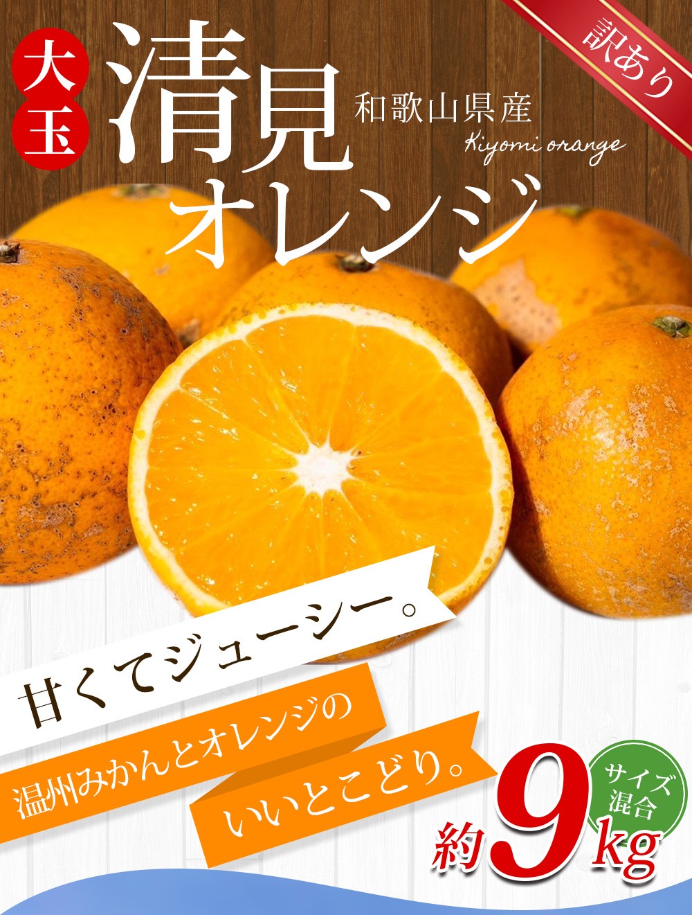 | 容量 | 訳あり大玉清見オレンジ 約9kg 品種:清見オレンジ(和歌山県海南市下津町産) 保存方法:風通しの良い冷暗所にて保存ください |