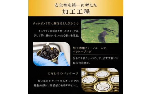一切の加熱処理を行わずに「マイナス40℃の凍結処理」を経て冷凍保管を行っているため、お召し上がりの際にはタンパク質が硬化せずに魚卵らしい非常にクリーミーな味わいを感じることができます。また、キャビア本来の香りもしっかりと感じていただけます。