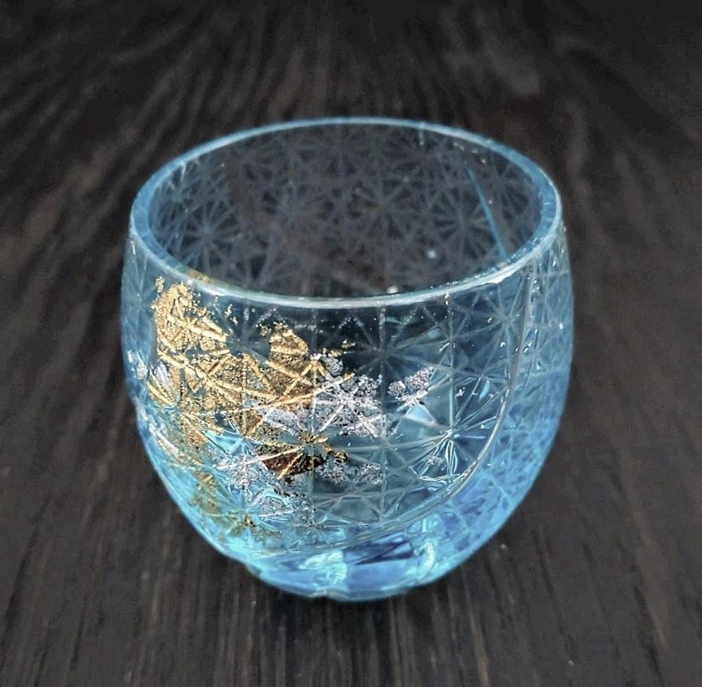 金箔銀箔を散りばめ、食洗機対応コートで加工した美しく暖かみのある切子ガラス製品です。