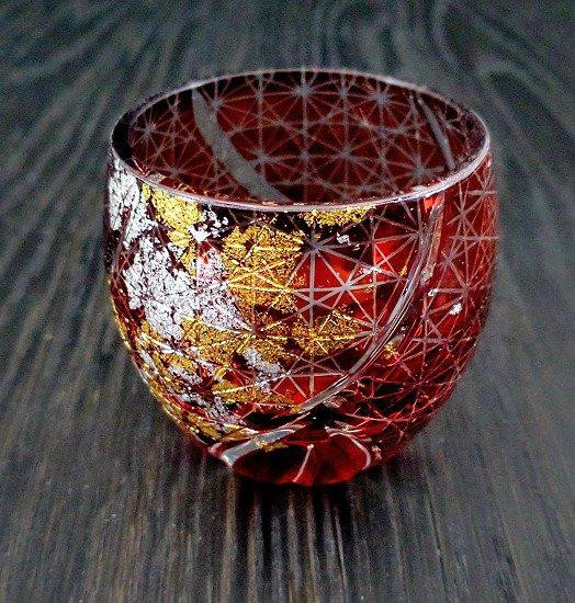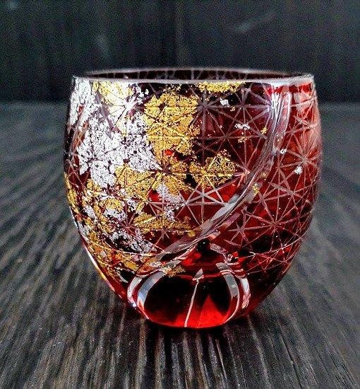 金箔銀箔を散りばめ、食洗機対応コートで加工した美しく暖かみのある切子ガラス製品です。