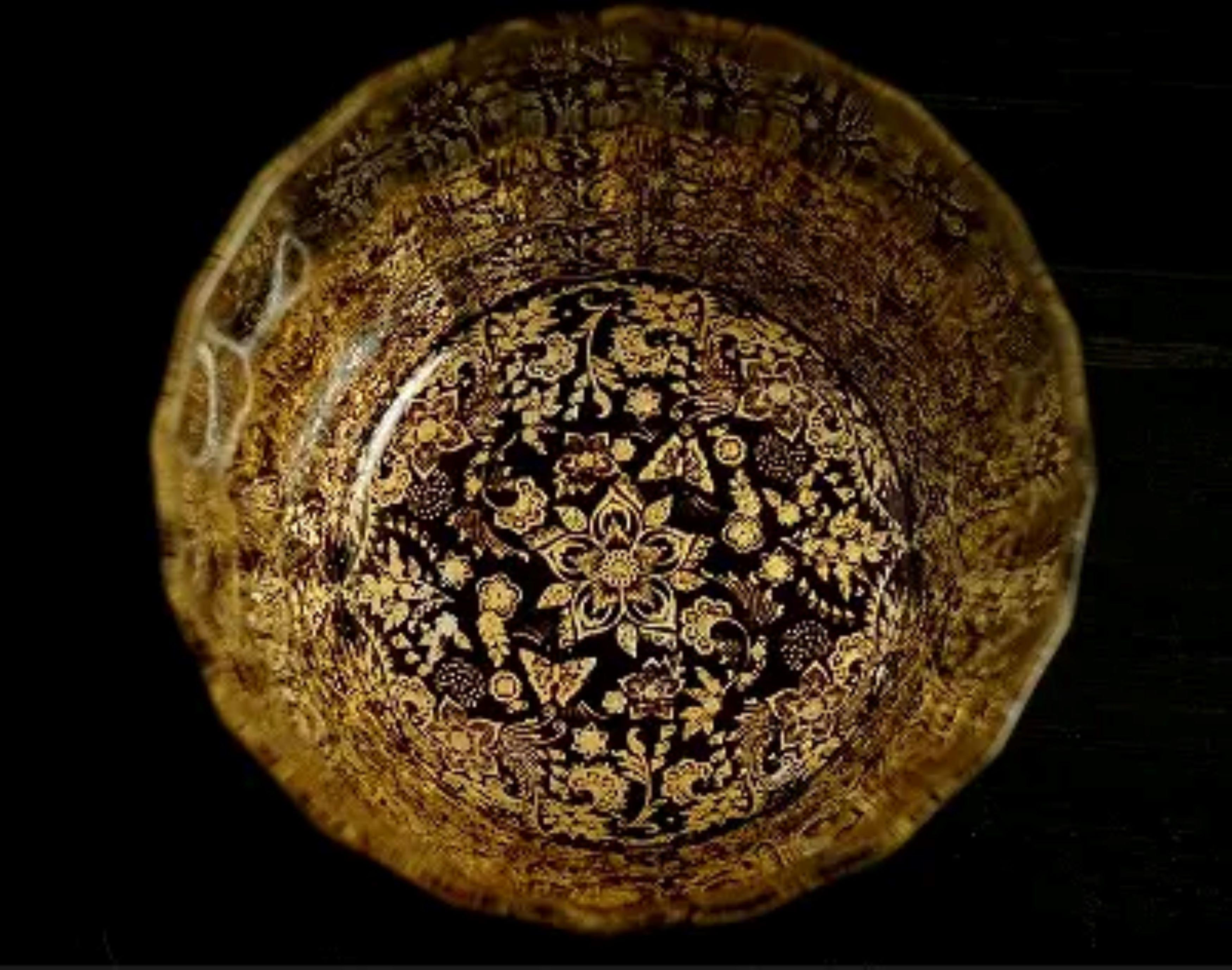 ガラスの底面の花の模様が金の花が舞っているようなデザインでとても美しいです。