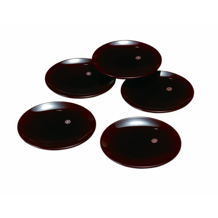 紀州漆器職人が丁寧に仕上げた【4.2寸 銘々皿 総溜 明月 (5枚組)】です。
