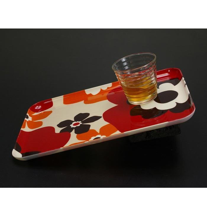 持ち手部分を省く事により、トレーの隅々まで使えるようにデザインされたスクエアフォルムの形状なので、お料理をのせてテーブルへ運んだあとは、そのままランチョンマットにもなってくれる点もポイントです。耐水性に優れ、食品衛生法にも合致した樹脂と塗料を使用していますので、お子様にも安心してご利用頂けます。