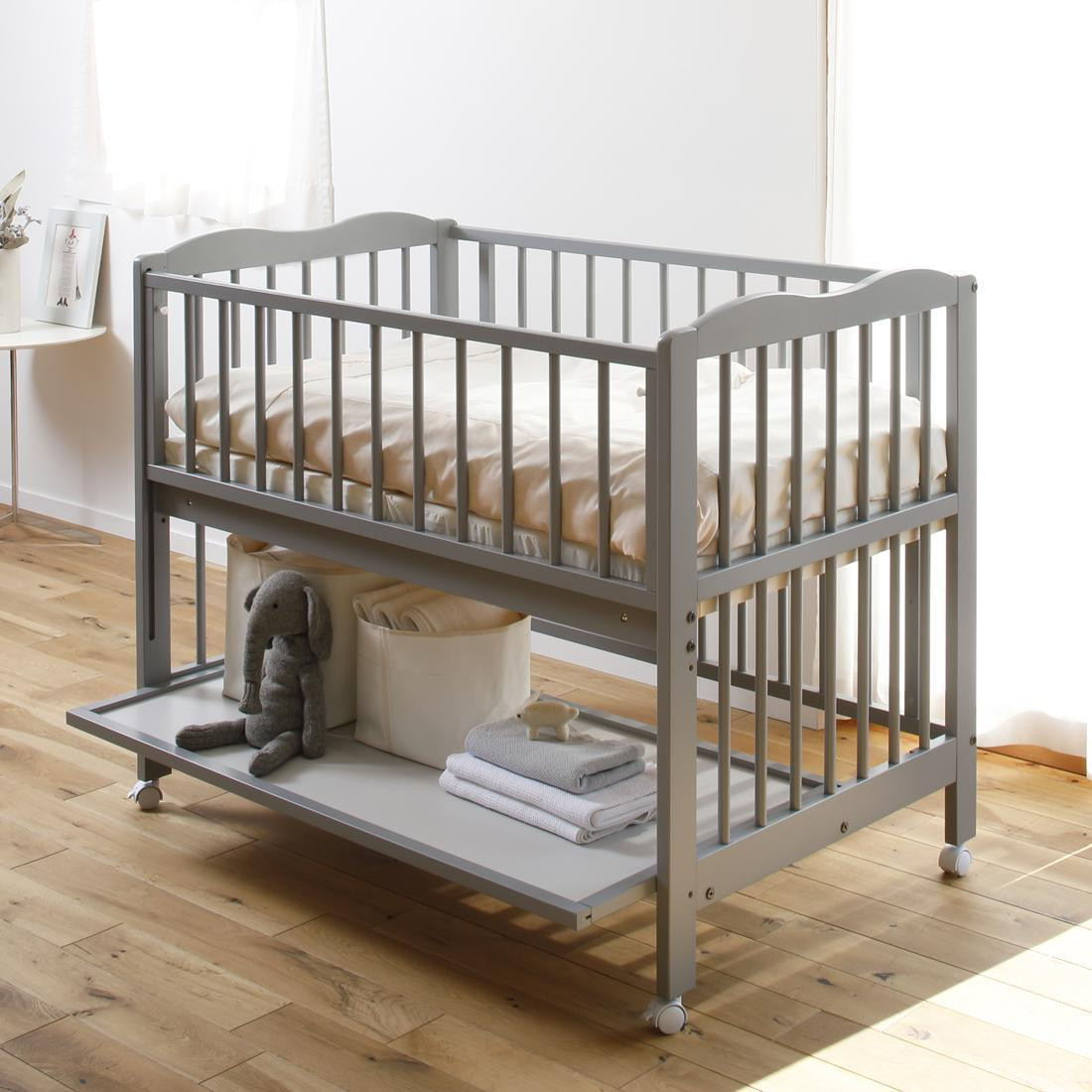 【選べるカラー】ハイタイプ&スライド収納棚付きベビーベッド