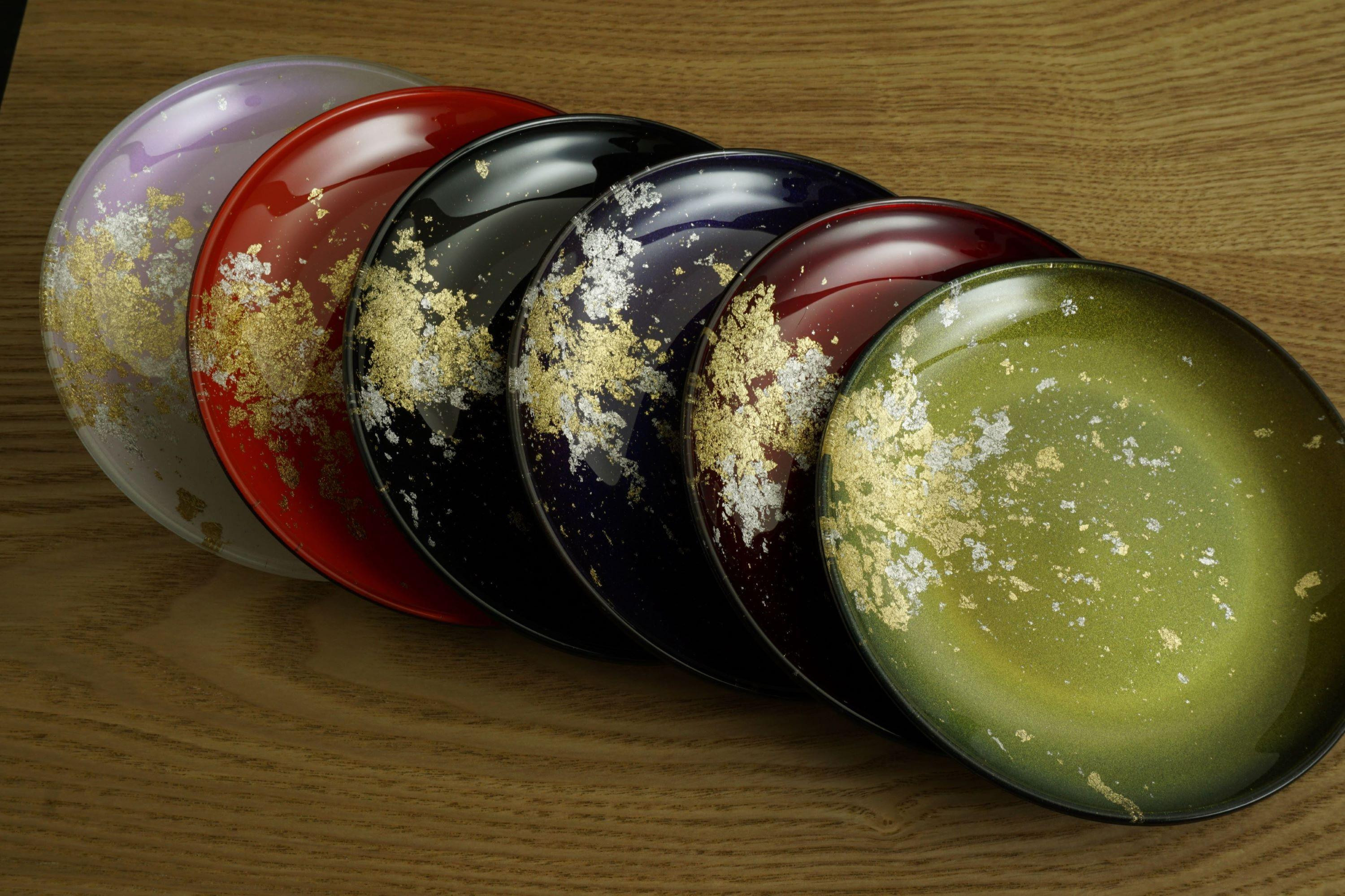 漆器の色は何層にも異なる色を塗り重ねて一つの色を表現します。