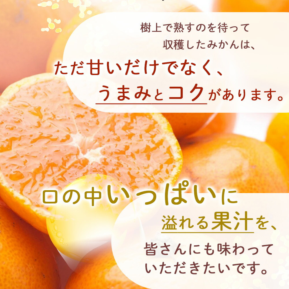 樹上で熟すのを待って収穫したみかんは、ただ甘いだけでなく、うまみとコクがあります。
