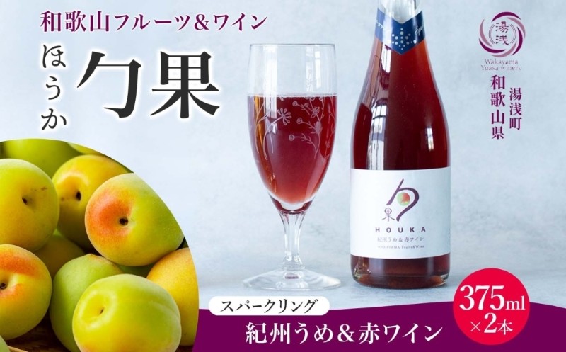 チョイスPayポイントと交換できる品 紀州うめのジュースを赤ワインとブレンドし、爽やかなスパークリングに仕上げました。 KG1007_ワインカクテル スパークリング 勹果 ほうか 紀州うめ&赤ワイン 375ml 2本 湯浅ワイナリー