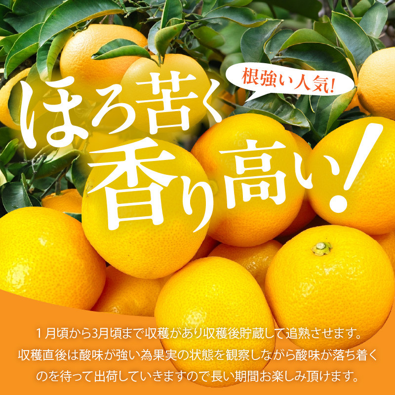1月頃から3月頃まで収穫があり収穫後貯蔵して追熟させます。収穫直後は酸味が強い為果実の状態を観察しながら酸味が落ち着くのを待って出荷していきますので長い期間お楽しみ頂けます。