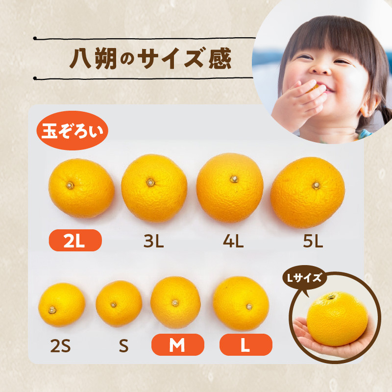 | 容量 | 八朔 玉ぞろいサイズ 2L/L/Mのいずれか一箱 箱込7.5kg(内容量約6.8kg) 秀品 優品 混合 ※サイズの指定等はできません。 |