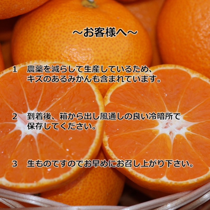 農薬を最小限に減らして栽培しているため、キズのあるみかんも含まれますが味に変わりはありません。