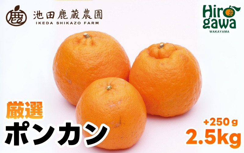 濃厚で果汁たっぷり!プレミアムな春みかんです 厳選 ポンカン 2.5kg+250g(痛み補償分) 光センサー 食頃出荷 / 有田 みかん 柑橘 蜜柑 くだもの 果物 果実 フルーツ 和歌山 ※1月中旬~2月下旬頃に順次発送予定 ※北海道・沖縄・離島への配送不可 【ikd008-p-2d5】