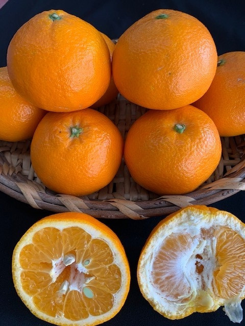 いよかんの外皮は厚いですが簡単に手で剥け、甘酸っぱい香りが広がります。中のふくろは少し厚いので剥いてからお召し上がりください。