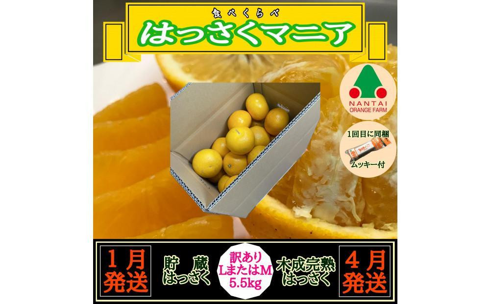 この自治体のポイントについてチョイス公式ポイント交換対象 1・4月発送 全2回 定期便 はっさく マニア 貯蔵 & 木成完熟 訳あり傷多め L または M 5.5kg 茶箱 和歌山 有田 南泰園