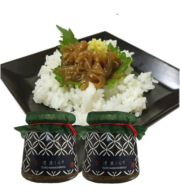 その日の朝に水揚げされた新鮮な生しらすを自家製醤油ベースの特製ダレに漬け込みました。紀州みなべの梅酢を使用しています 梅のエキスが含まれる梅酢を入れることで 引き締まった奥深い味わいに仕上げています。