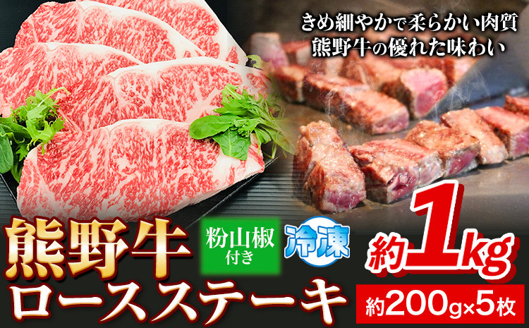 チョイスPayポイントと交換できる品 きめ細やかで柔らかい肉質、熊野牛の優れた味わい。 熊野牛 ロースステーキ 1kg 粉山椒付き (200g×5枚) 澤株式会社(Meat Factory) 《30日以内に出荷予定(土日祝除く)》和歌山県 日高町 送料無料 牛肉 肉 ロース ステーキ