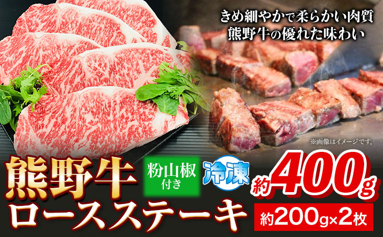 チョイスPayポイントと交換できる品 柔らかな肉質、あふれる旨味。肉厚で肉汁たっぷりな熊野牛ロースステーキ! 熊野牛 ロースステーキ 計400g (200g×2枚) 粉山椒付き 澤株式会社(Meat Factory) 《30日以内に出荷予定(土日祝除く)》和歌山県 日高町 熊野牛 牛 うし 牛肉 ロースステーキ ステーキ ロース 山椒 送料無料