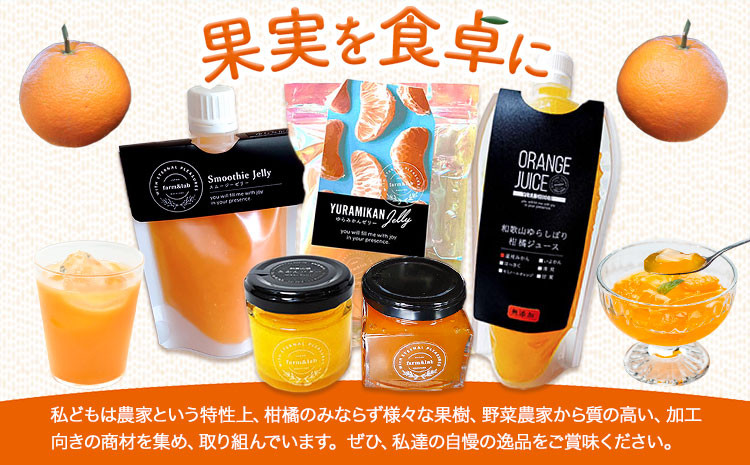 チョイスPayポイントと交換できる品 みかんを使って作った、こだわりの5種をぜひお楽しみください。 みかんを楽しむセット 各1個 ジャム バター ゼリー(2個入り) スムージー ジュース(324ml) Farm&lab 《30日以内に出荷予定(土日祝除く)》和歌山県 日高町 みかん 柑橘 果物 無添加 おやつ デザート セット 詰め合わせ