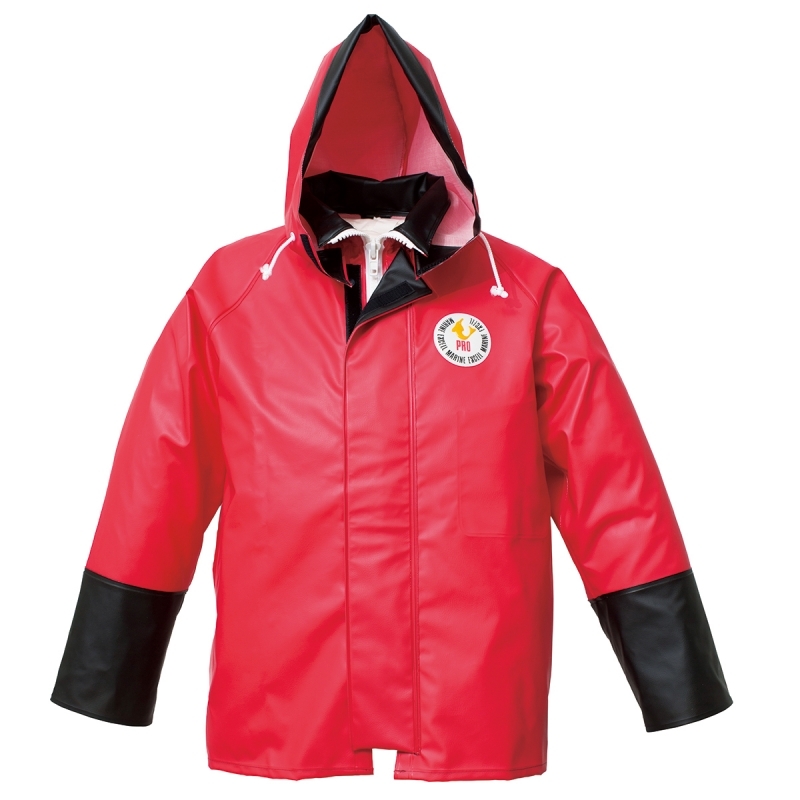 ●高周波ウェルダーによる溶着で防水加工 ●表地に高品質塩化ビニールと特殊フィルムを配合し、耐油性と抜群の耐寒性を実現 ●襟付きフード仕様 ●前立てと襟部分はマジックテープを採用し、手袋をしたままでも簡単着脱 ●遠洋・中近海作業、湾岸作業、養殖業、水産加工業 ●袋入り ●日本製 カラー展開:レッド、ブラックがあります(本商品はレッドです) 【製造】 株式会社アスレル 和歌山県日高郡由良町吹井333-1 事業者 :株式会社ロゴスコーポレーション