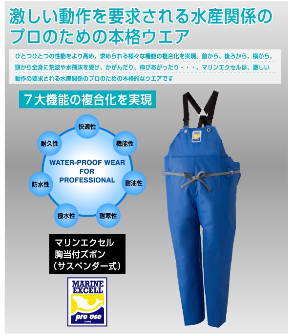 | 容量 | サイズ:LL(総丈108cm 股下70cm 胴回り120cm) 素材:[表地]塩化ビニール(耐寒加工) [裏地]ポリエステル(撥水処理加工) |