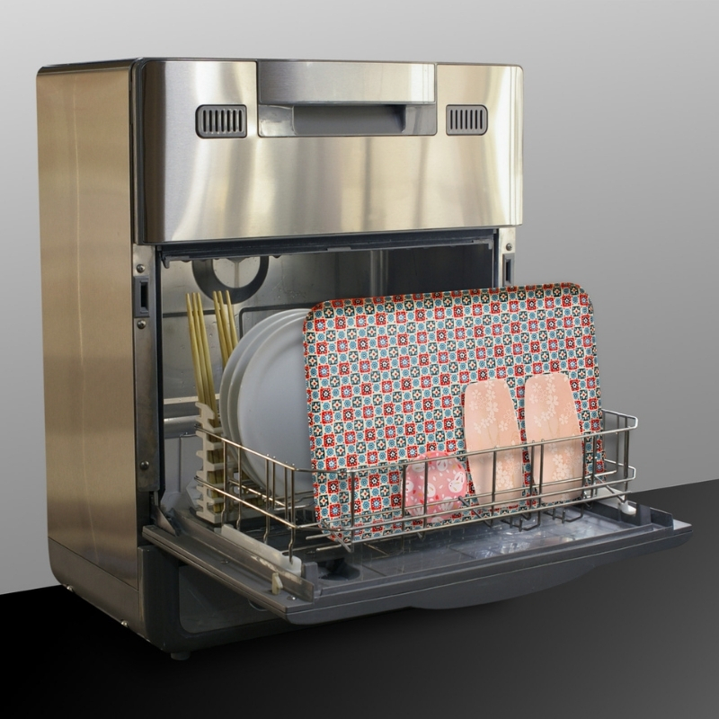 使用している和紙だけでは、水に濡れただけで破けてしまいますが、このトレーは、和紙の表面に樹脂がコーティングされており、さらに、塗装する事により、撥水・防水性を高めています。汚れた時は、水洗いはもちろんの事、家庭用の食洗機でも洗浄頂けます。また、食品衛生法にも合致した、樹脂と塗料を使用していますので、お子さんにも安心してご利用頂けます。