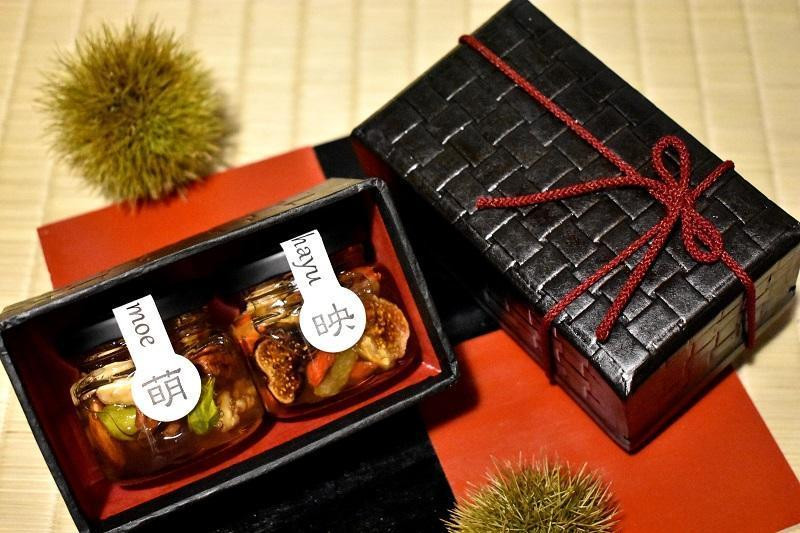 | 容量 | ・【萌】70g×1本 ・【映】75g×1本 ・網代模様箱(柿渋塗)×1 ・【萌】蜂蜜(和歌山県海南市産)・くるみ・アーモンド・ヘーゼルナッツ・ピーカンナッツ・ピスタチオ ・【映】蜂蜜(和歌山県海南市産)・白いちじく・黒いちじく・グリーンレーズン・クコの実 |