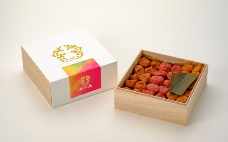 やわらかい食感が南高梅の特徴で高級感あふれる木箱に、はちみつ梅・しそ漬け梅・こんぶ梅を詰め合わせました。ひと箱で3種類のお味が楽しめます。
