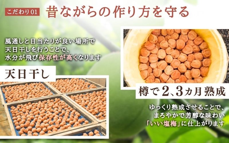【あったかご飯に梅干】昔ながらの製法で仕上げた梅干がご飯のおいしさを引き立てます。 「塩辛さ」と「すっぱさ」というシンプルな風味だけに作り手の技術力が問われる梅干です。