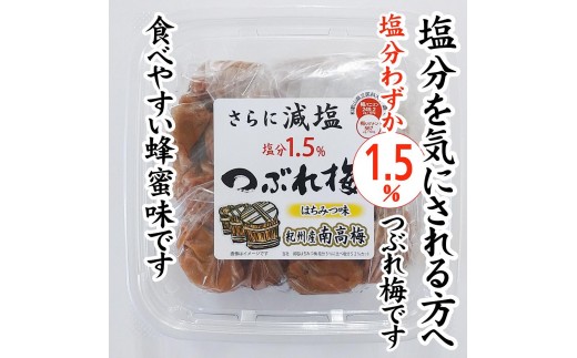 3%の減塩梅より、さらに減塩タイプで、「わずか塩分が1.5%」の南高梅です。塩分を気にされる方にもどうぞ