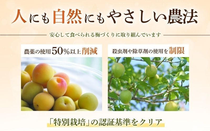 長年培われてきた方法で、梅本来のうま味を残しつつ塩分控えめに仕上げました。