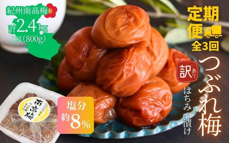 チョイスPayポイントと交換できる品 【定期便全3回】【塩分約8%】和歌山紀州南高梅 つぶれ梅 はちみつ漬け 訳あり 800g agrjpn-tkb010